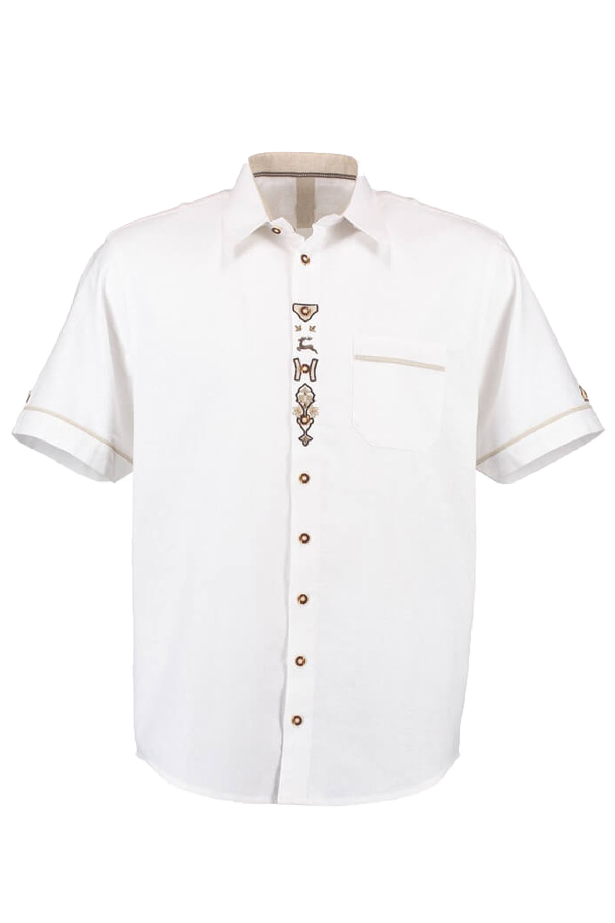 Crafted by Bavaria Attire, this shirt reflects timeless Bavarian charm with a clean, refined look. Made from premium Cotton, it offers a smooth, breathable feel that stays comfortable all day while maintaining a structured finish. The soft ivory tone is elevated with subtle beige piping along the sleeves and pocket, creating a warm, elegant contrast. The front placket features delicate traditional embroidery, adding a heritage touch without overpowering the design. Carefully stitched seams and polished buttons highlight its quality craftsmanship. Perfectly paired with traditional outfits or modern styling, it complements classic accessories like Trachten Socks and blends effortlessly within collections of authentic Trachten Shirts, delivering both comfort and cultural authenticity.