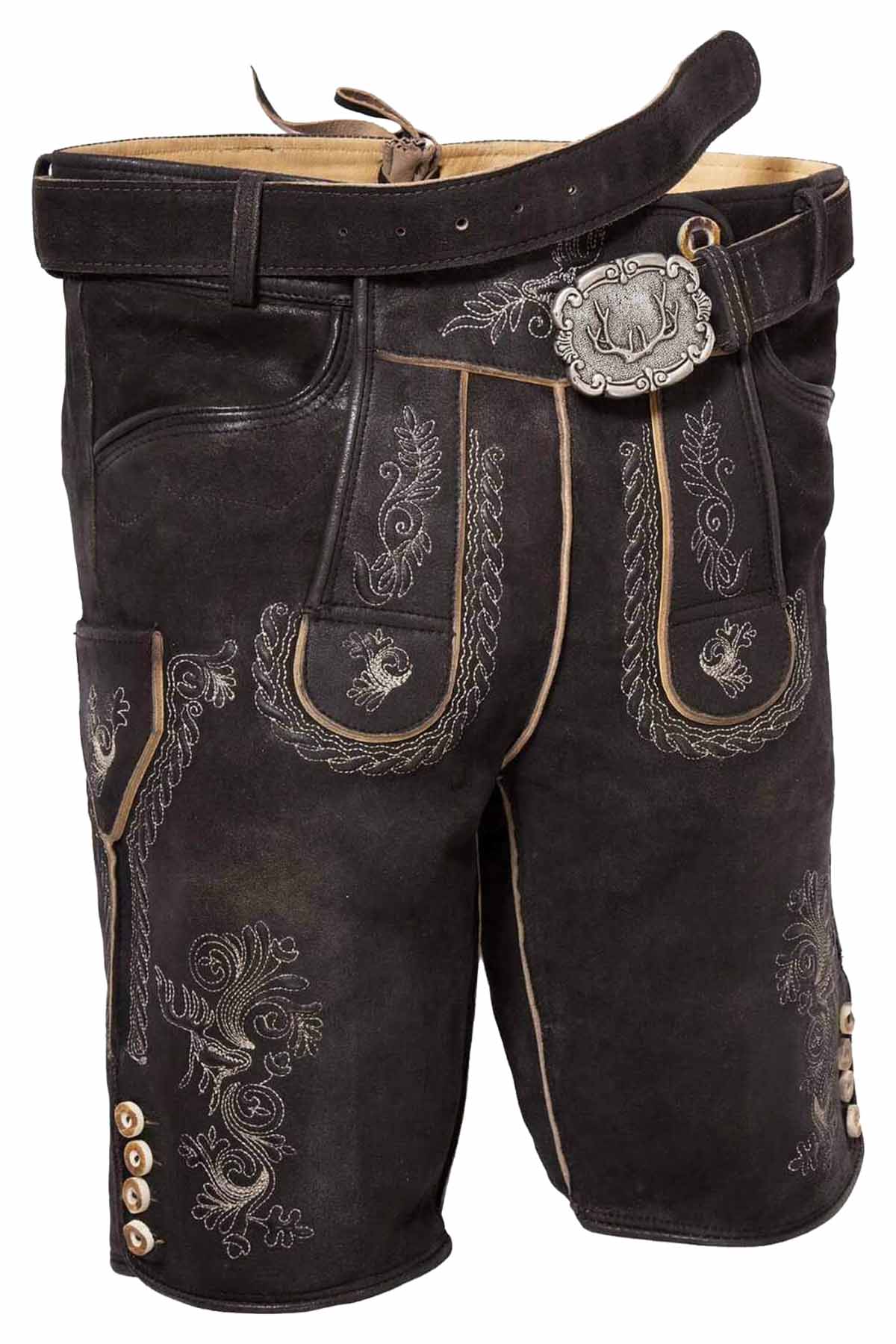 Crafted from soft goat suede leather, this traditional Bavarian short offers refined embroidery, vintage depth, contrast piping, and lasting comfort. Its polished finish, decorative buckle, and heritage detailing create a premium look suited for festivals, celebrations, and elevated cultural wear.