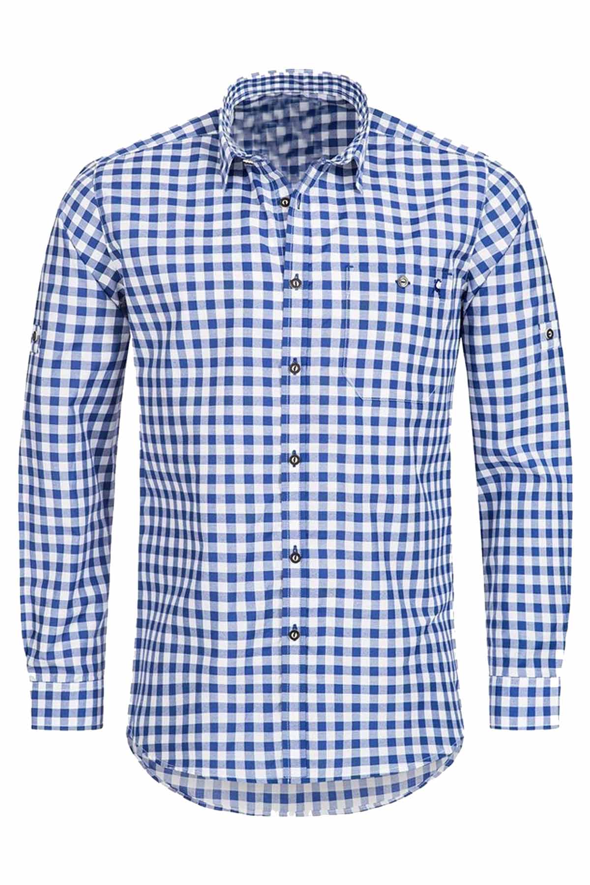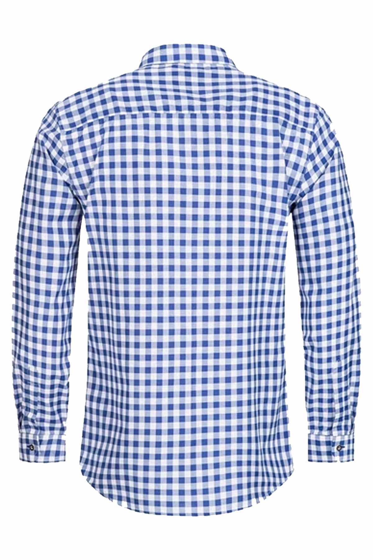 A stylish cotton shirt featuring a classic blue gingham design. Soft, breathable, and neatly tailored, it offers comfort with traditional charm. Perfect for festive occasions or casual wear, combining timeless Bavarian style with modern ease and refined everyday versatility.