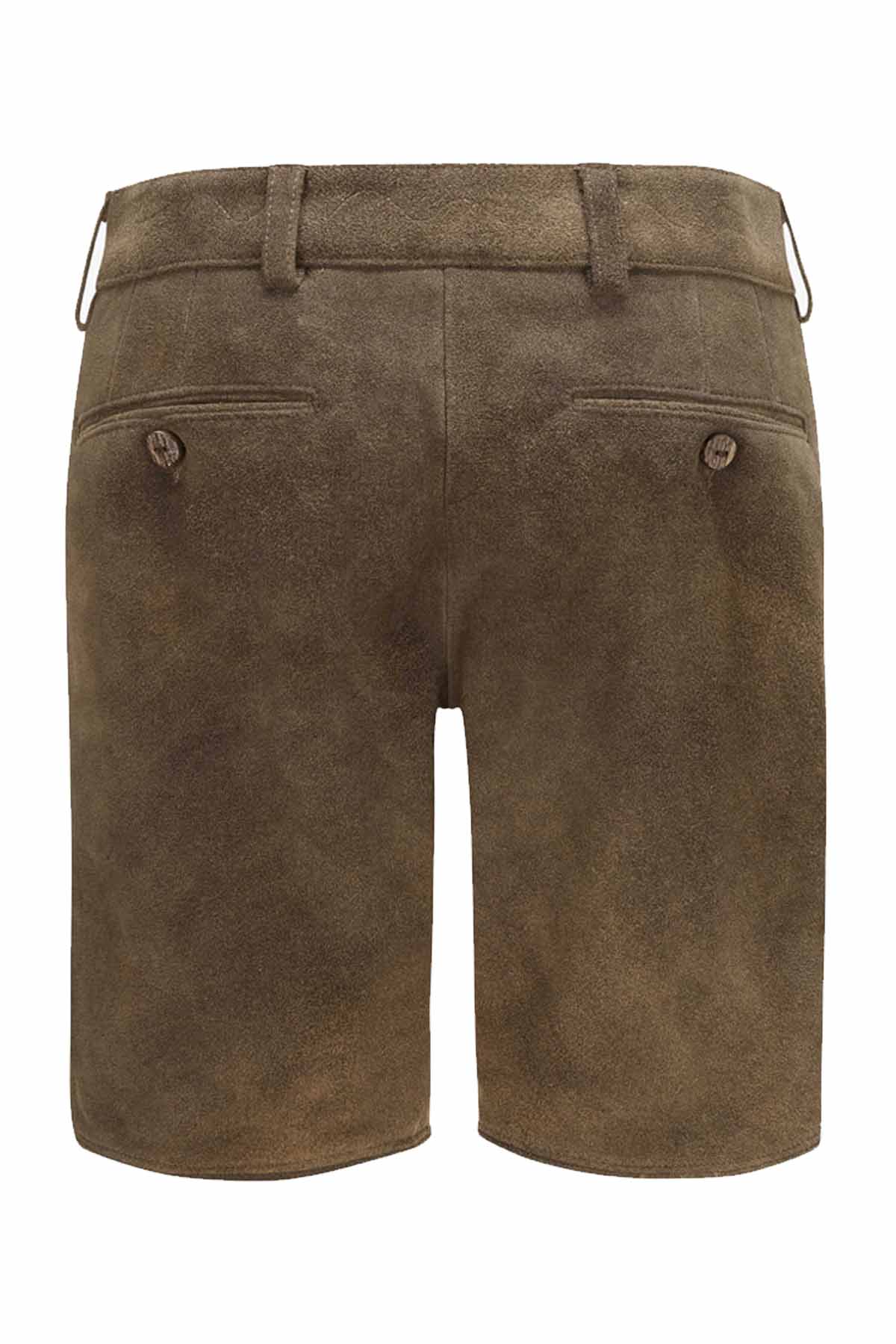 This lederhosen showcases a clean cargo-inspired silhouette with a traditional Bavarian spirit, making it ideal for men who want heritage style with a sharper everyday finish. The goat suede leather gives it a velvety softness, while the weathered brown tone adds depth and character. Front pockets, side button accents, and strong stitching complete a practical yet polished design that feels comfortable, durable, and distinctly premium.