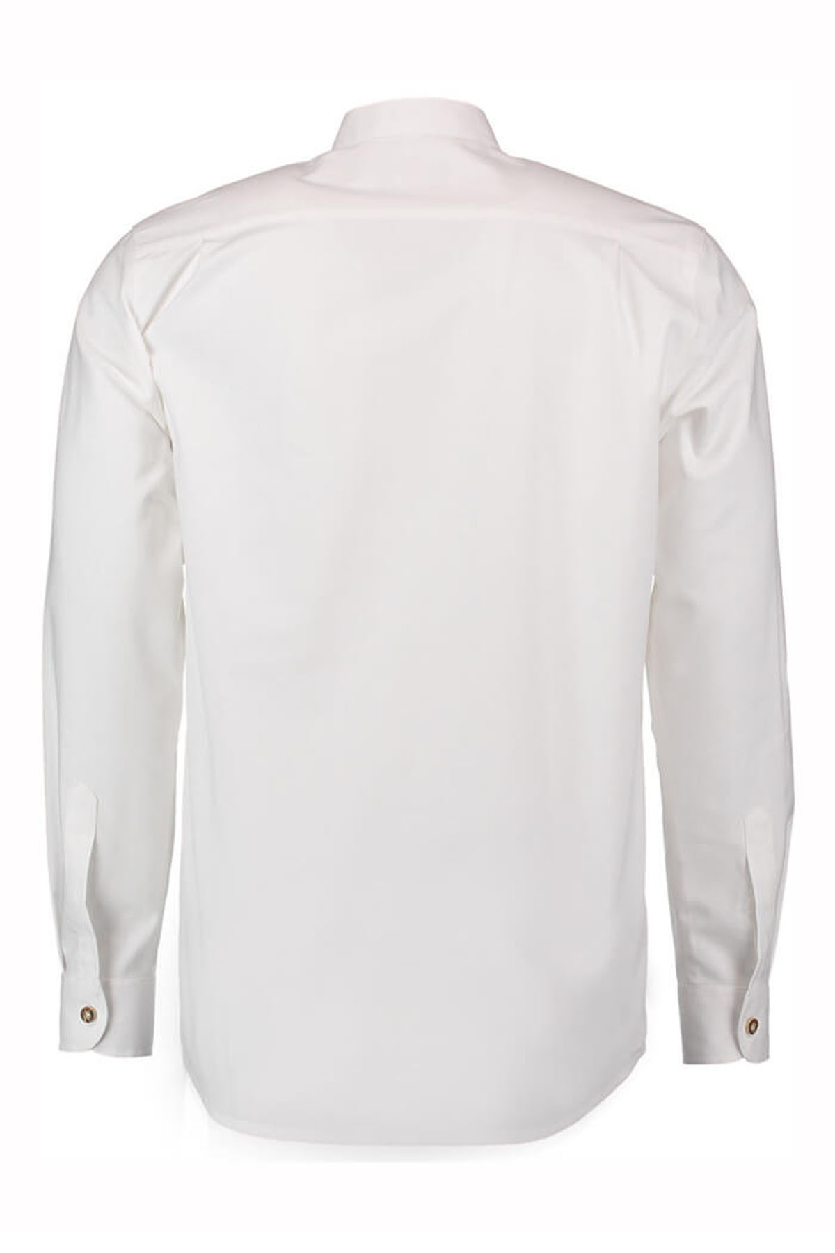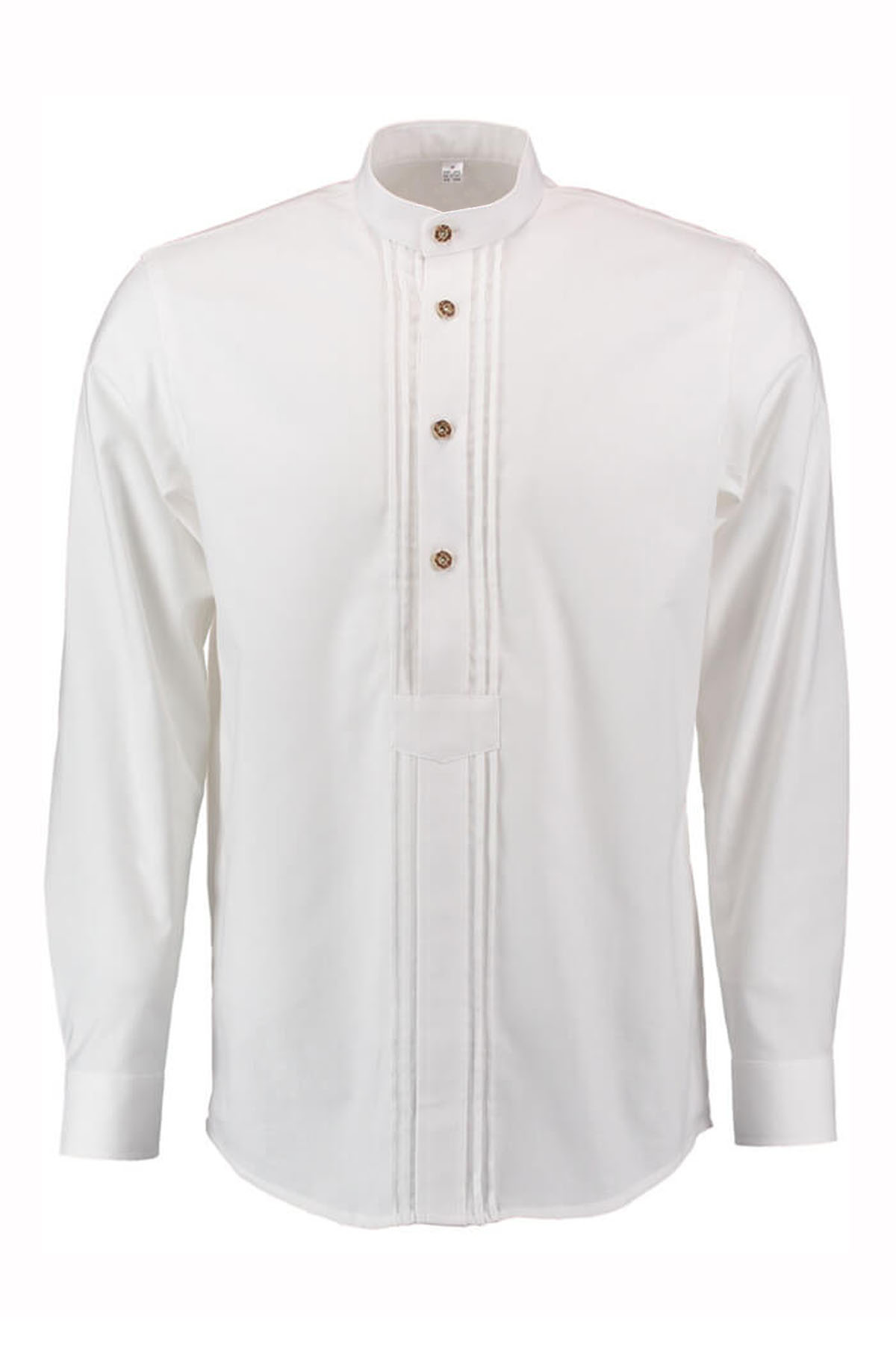 Elegant white Trachten shirt crafted from soft cotton, offering breathable comfort and a refined finish. Perfect for traditional styling, it pairs effortlessly with classic Bavarian outfits while delivering a clean, polished look suitable for festive and casual wear.