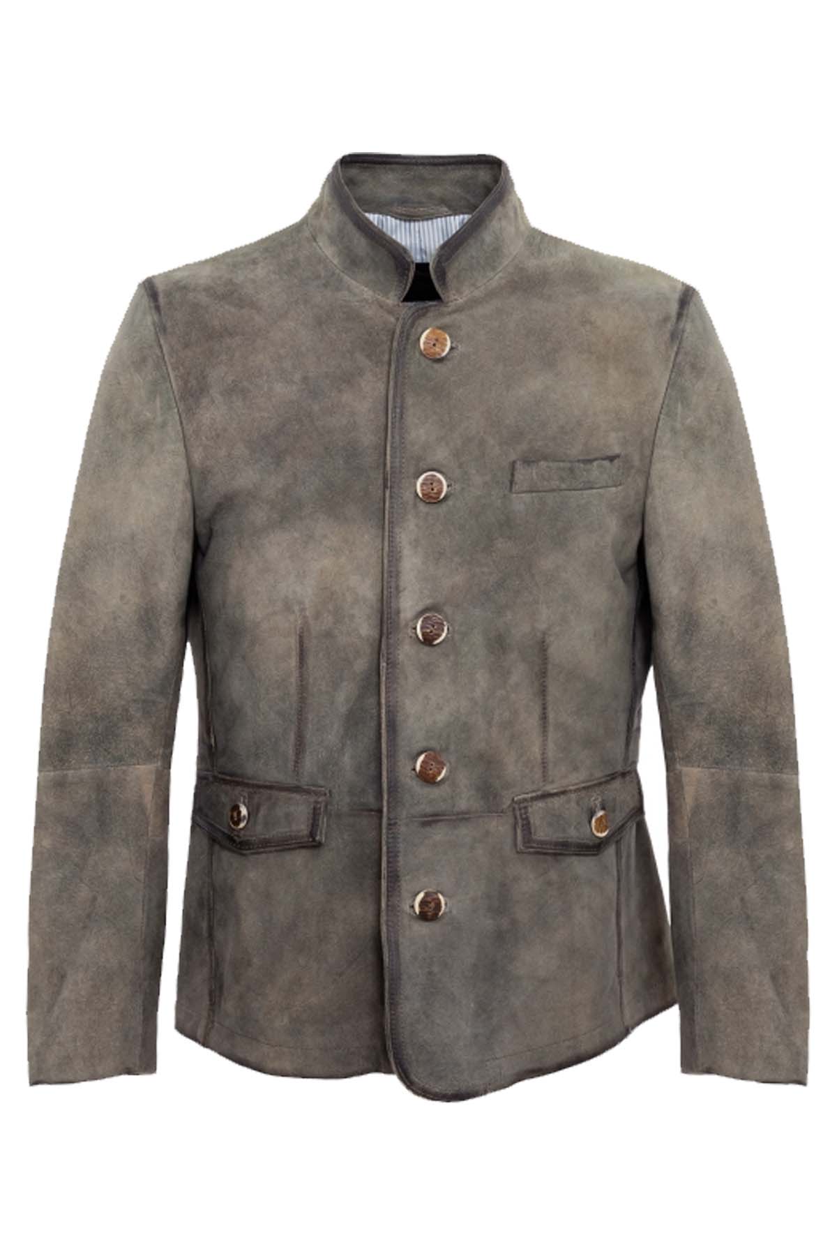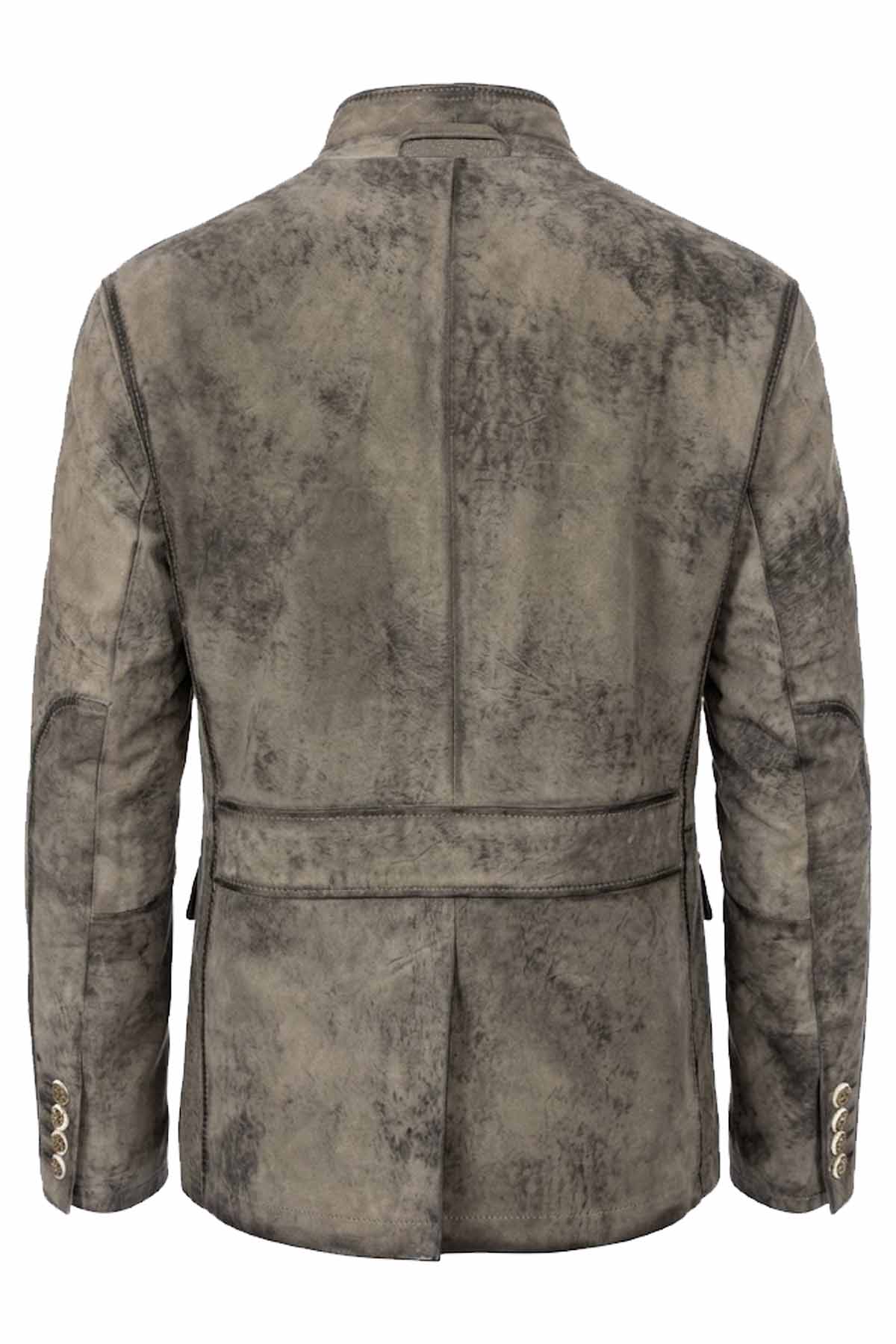 Crafted from soft suede leather, this traditional jacket features a vintage grey-brown tone, clean tailoring, and durable stitching. Designed for comfort and style, it pairs easily with classic Bavarian outfits, offering a refined yet authentic look for festive and everyday wear.