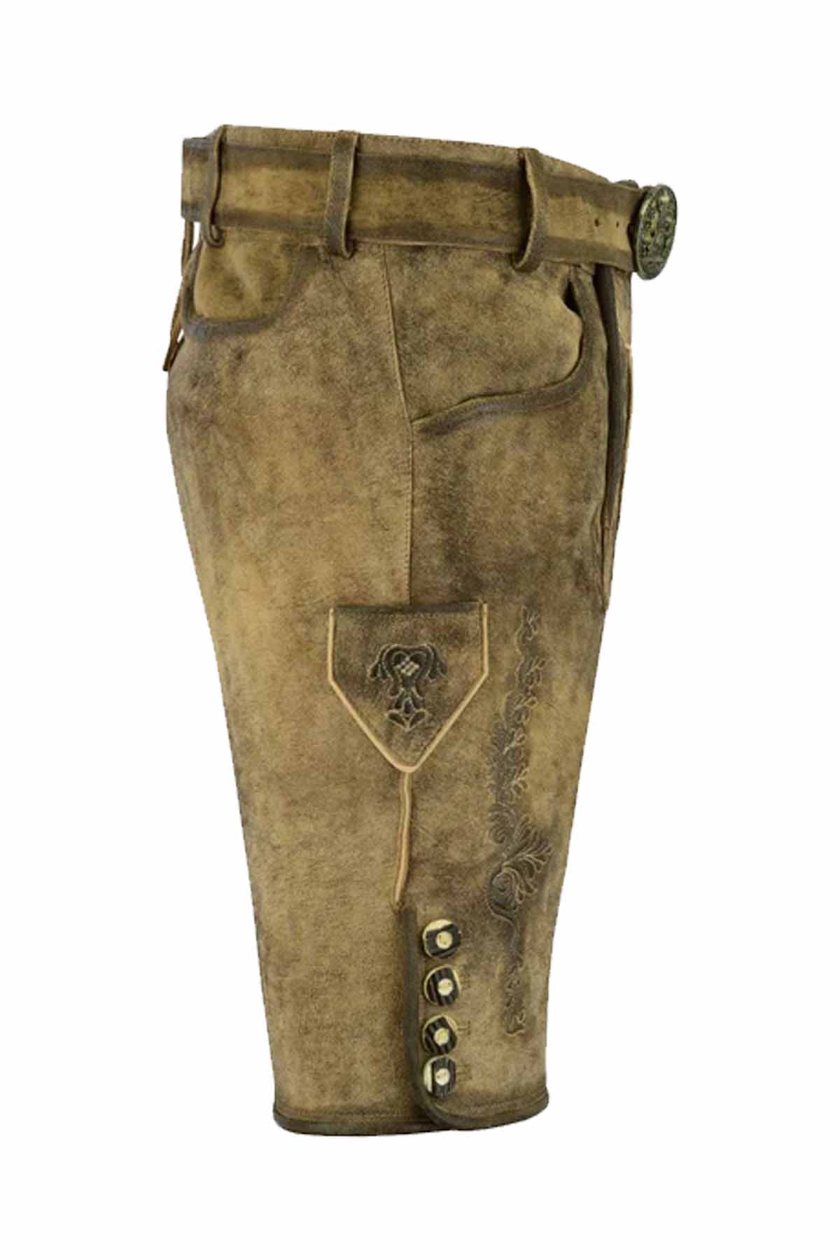 Crafted by Bavaria Attire, this piece reflects true heritage through its soft goat suede leather, offering a smooth, velvety touch that feels naturally broken-in from the first wear. The warm earthy tone blends shades of aged tan and muted brown, creating a rich vintage finish with subtle variations. Additionally, the front panel showcases detailed embroidery inspired by traditional Bavarian artistry, while the sturdy stitching enhances both durability and structure. Designed for comfort, these Lederhosen Shorts provide ease of movement and a tailored fit, making them perfect for festive occasions. Whether styled with Trachten Jackets or paired with classic Trachten Socks, this design balances authenticity with modern wearability, offering a refined alternative to Bundhosen for a lighter yet equally traditional look.
