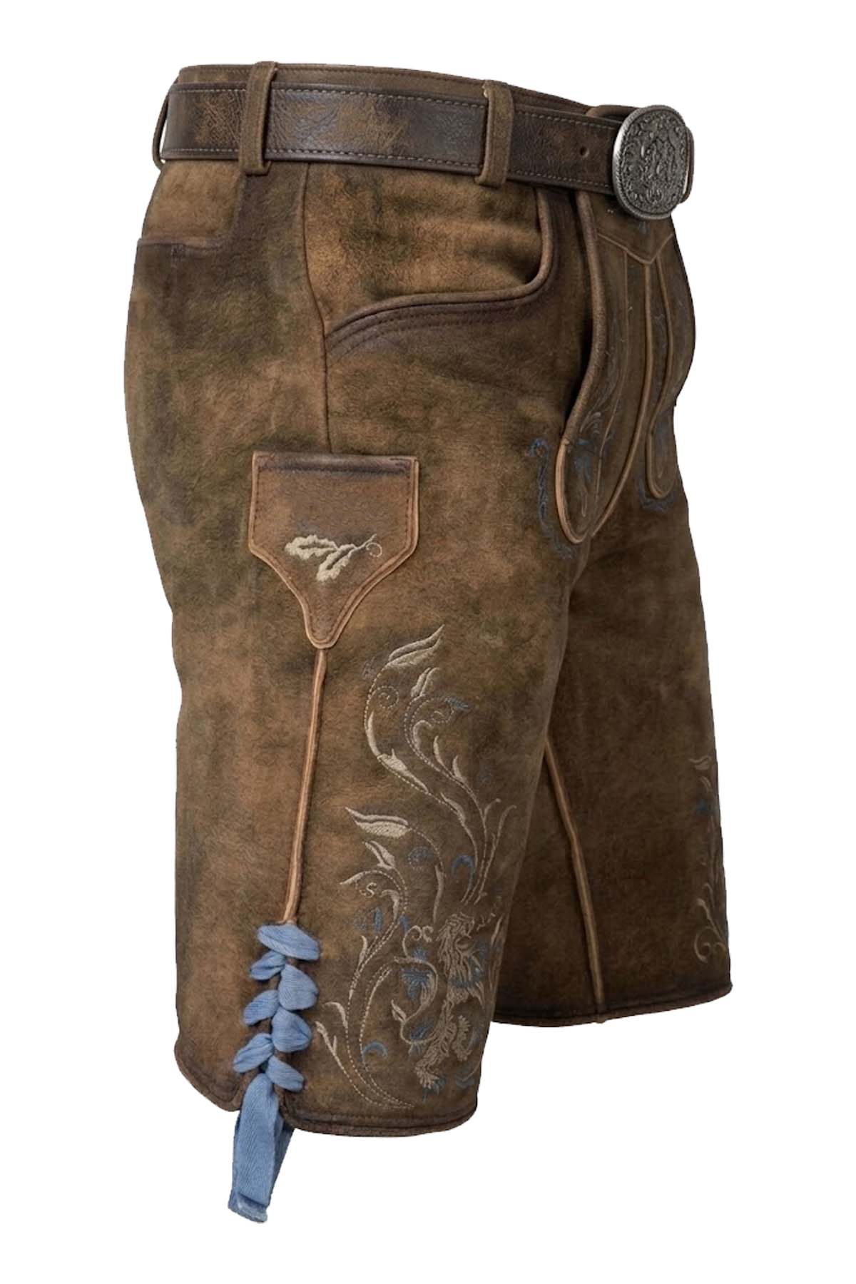 Experience timeless Bavarian elegance with the Watzmann Lederhosen by Bavaria Attire, expertly crafted from premium goat suede leather that feels exceptionally soft, velvety, and naturally breathable against the skin. The rich antique brown tone carries subtle earthy variations, giving each piece a distinctive character, while fine embroidery in muted blue-grey shades adds depth and heritage charm. Precision stitching and a smooth, polished finish reflect true artisan craftsmanship, ensuring durability without compromising comfort. Designed for festive moments, this piece pairs effortlessly with an Oktoberfest Outfit, especially alongside Men’s Trachten Jackets & Waistcoats and Traditional Socks, making these Lederhosen Shorts a refined choice for both celebration and everyday traditional wear.